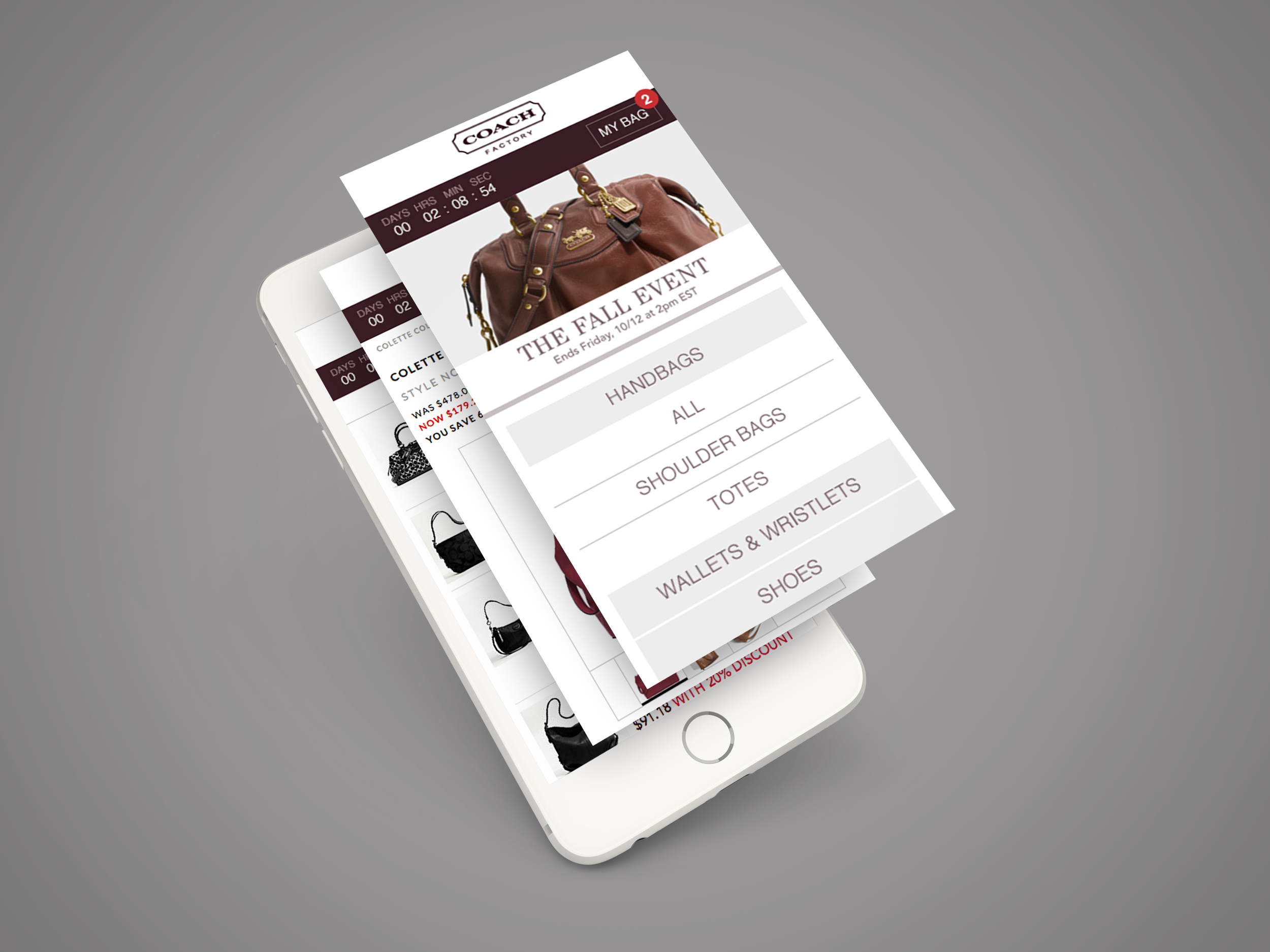 Coach Factory was a members-only, private-event retail site. Sales were time-bound, and loyal customers got deeper discounts based on their membership tier. Making the brand feel luxurious and exclusive was the focal point. We had to build a storefront that felt as curated as the brand itself, on a platform that didn't support that timed private sales natively.