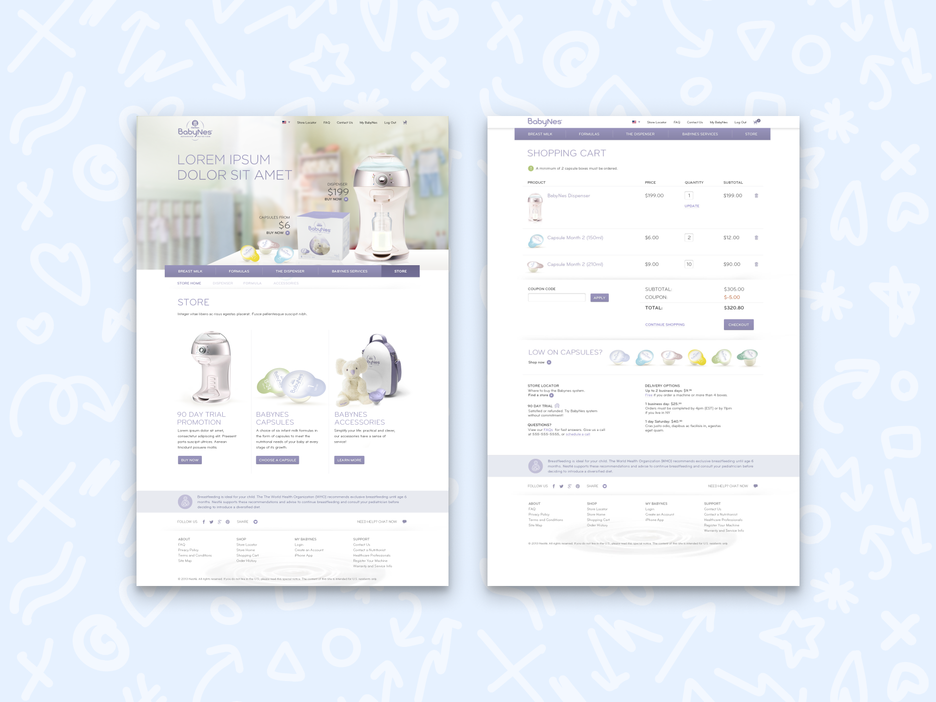 BabyNes was a premium baby nutrition system from Nestlé, sold directly to consumers. Before designing anything, we flew to their LA headquarters to understand the brand, the product, and what it means to sell nutrition products to first-time parents.